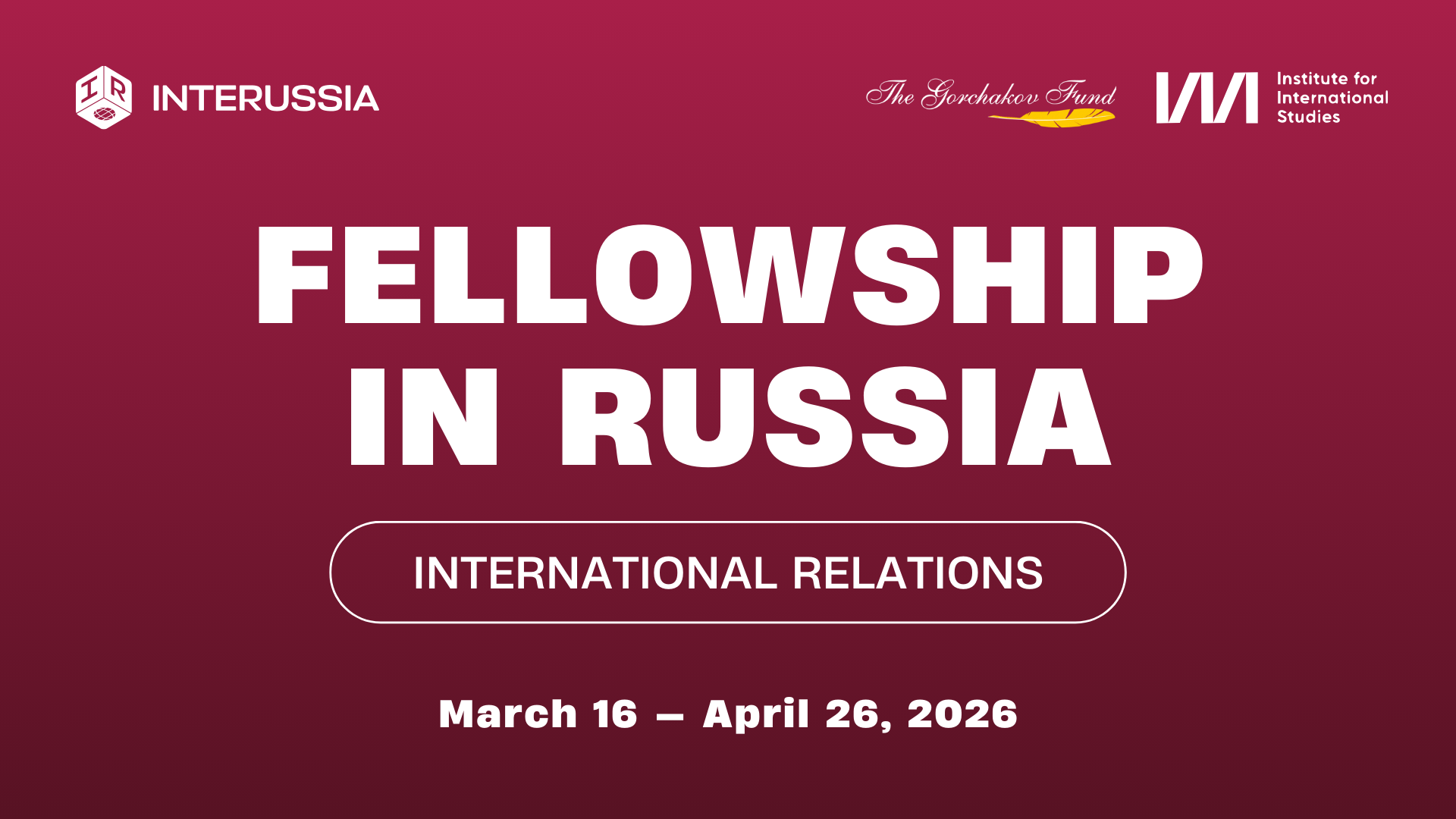 The InteRussia fellowship program in international relations is implemented by the Mezhdunarodniki Autonomous Non-Profit Organisation in cooperation with the Gorchakov Fund and MGIMO Institute for International Studies.